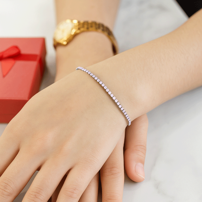 La Pulsera Tennis Bañada en Plata es una joya icónica que combina elegancia y brillo atemporal de 19cm de largo. Cada eslabón está engastado con delicados circones transparentes que capturan la luz con sutileza, creando un resplandor refinado que complementa cualquier estilo.