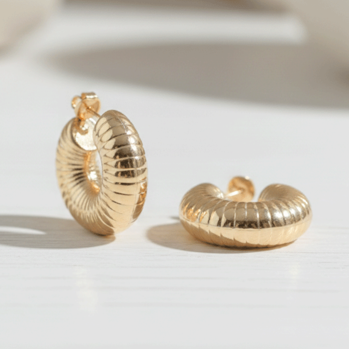 Semi Argollas Chunky «Ribbed» con Baño de Oro