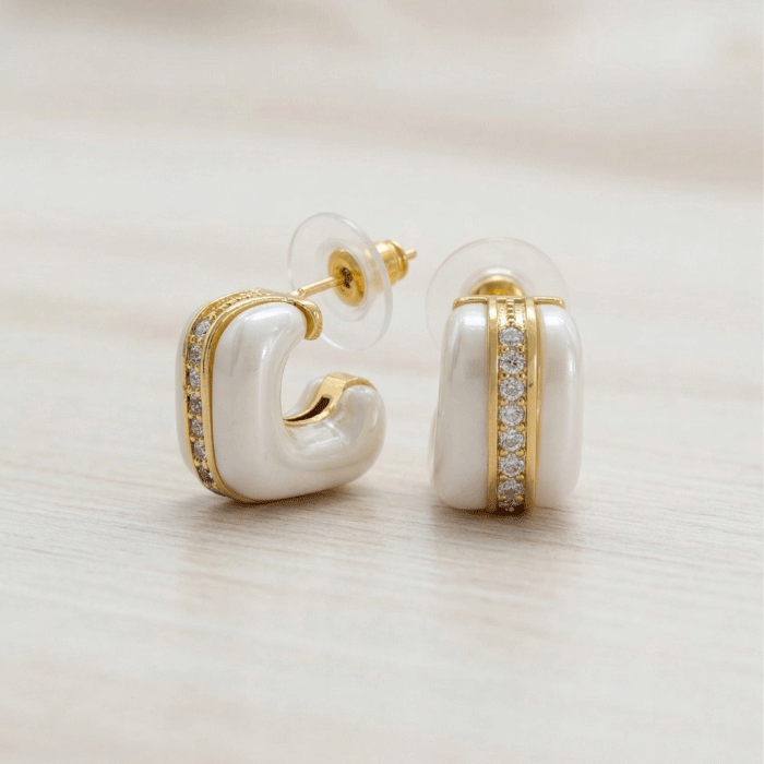 Semi Argollas de Resina Blanca y Circones con Baño de Oro