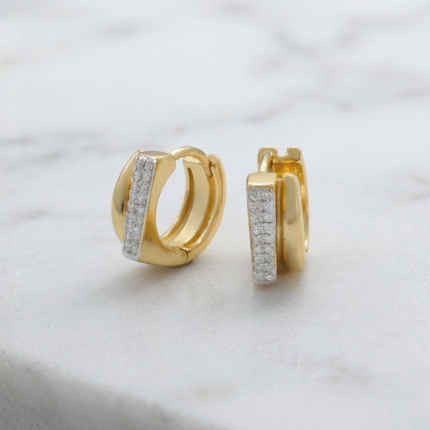 Eleva tu estilo diario con estas sofisticadas argollas tipo "Huggies". Bañadas en oro de 18K y recubiertas con un deslumbrante pavé de micro-circones, ofrecen un ajuste cómodo y un brillo excepcional que captura la luz desde cualquier ángulo.