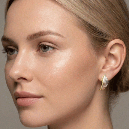 Eleva tu estilo diario con estas sofisticadas argollas tipo "Huggies". Bañadas en oro de 18K y recubiertas con un deslumbrante pavé de micro-circones, ofrecen un ajuste cómodo y un brillo excepcional que captura la luz desde cualquier ángulo.