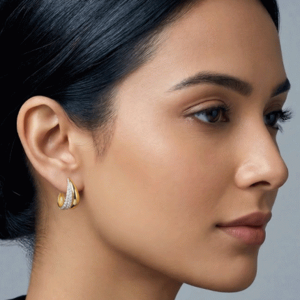 Eleva tu estilo cotidiano con estas sofisticadas semi argollas de diseño ergonómico. Con un acabado pulido en oro y una sección interna densamente engastada con circones, estas piezas ofrecen el equilibrio perfecto entre la modernidad geométrica y el brillo clásico del diamante.