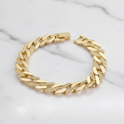 Pulsera tipo eslabón bañada en oro, con circones incrustados para un brillo elegante y moderno. Ideal para looks sofisticados y uso diario.