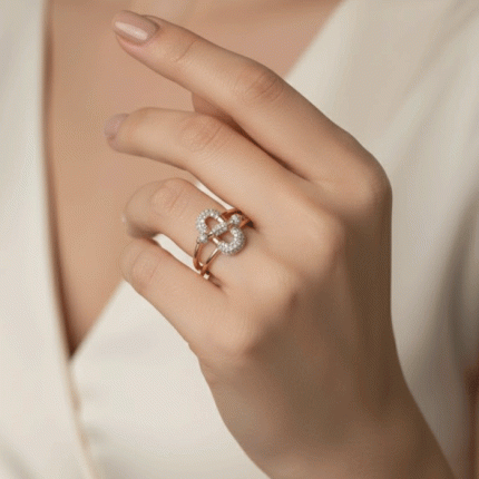Anillo Herraje Elegance Bañado en Oro Italiano 24KT con Circones y Detalle en Oro Blanco