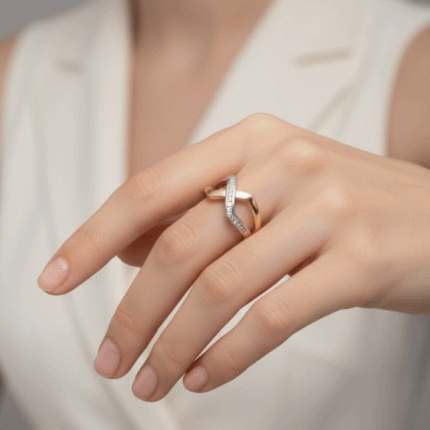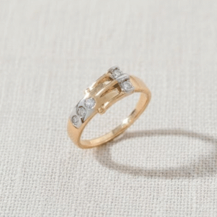 Anillo de Dama Hebilla Bicolor Oro 24KT con Detalles de Circones